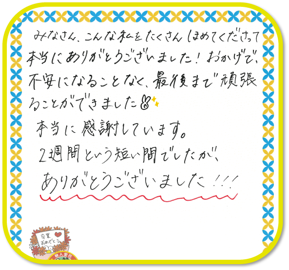 卒業された皆様からいただいた「お声」をご紹介いたします。