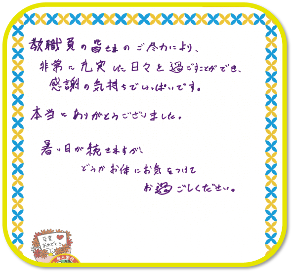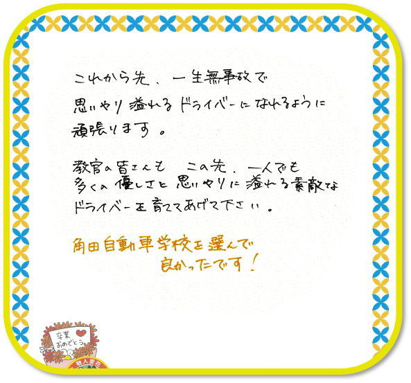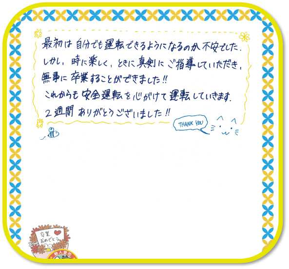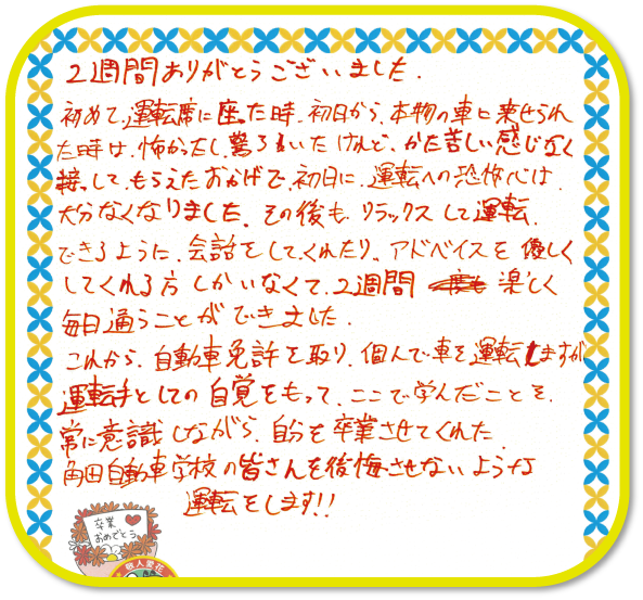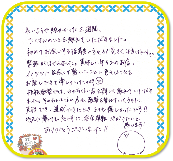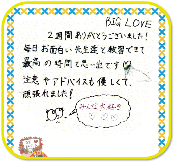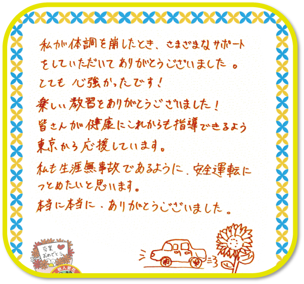 直筆で書いていただく感想やメッセージは当校の宝物です。